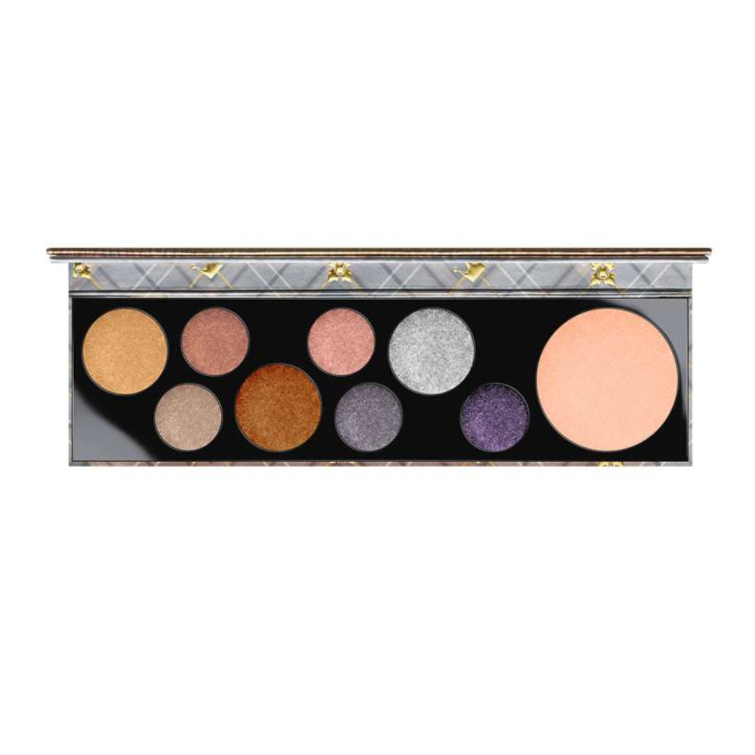 A palette of eight eyeshadows and one highlighter that consists of the following shades