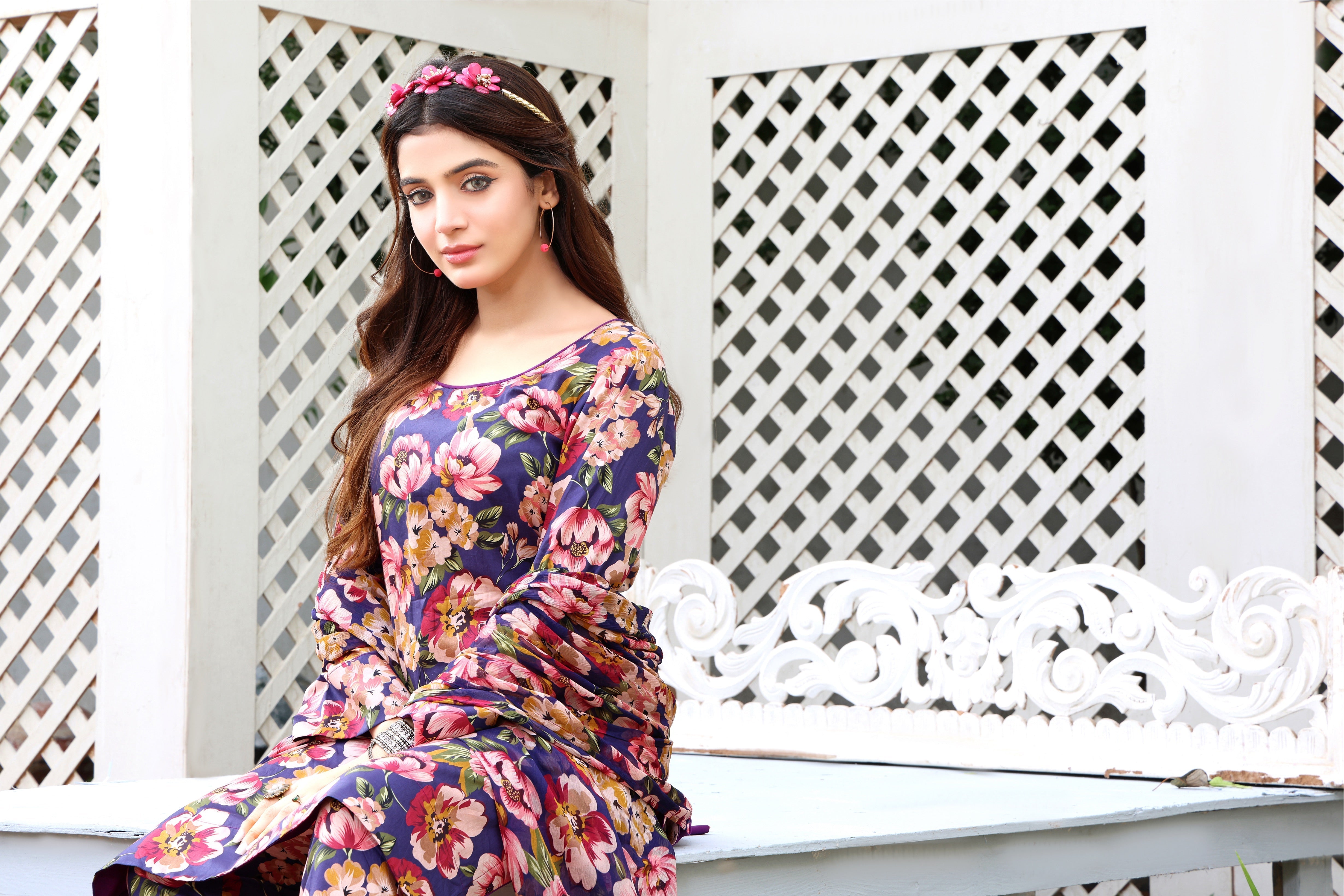 The article includes:Unstitched 3PCDigital Printed Shirt 3 yardsDigital Printed Chiffon Dupatta Digital Printed Trouser 2.5 yards