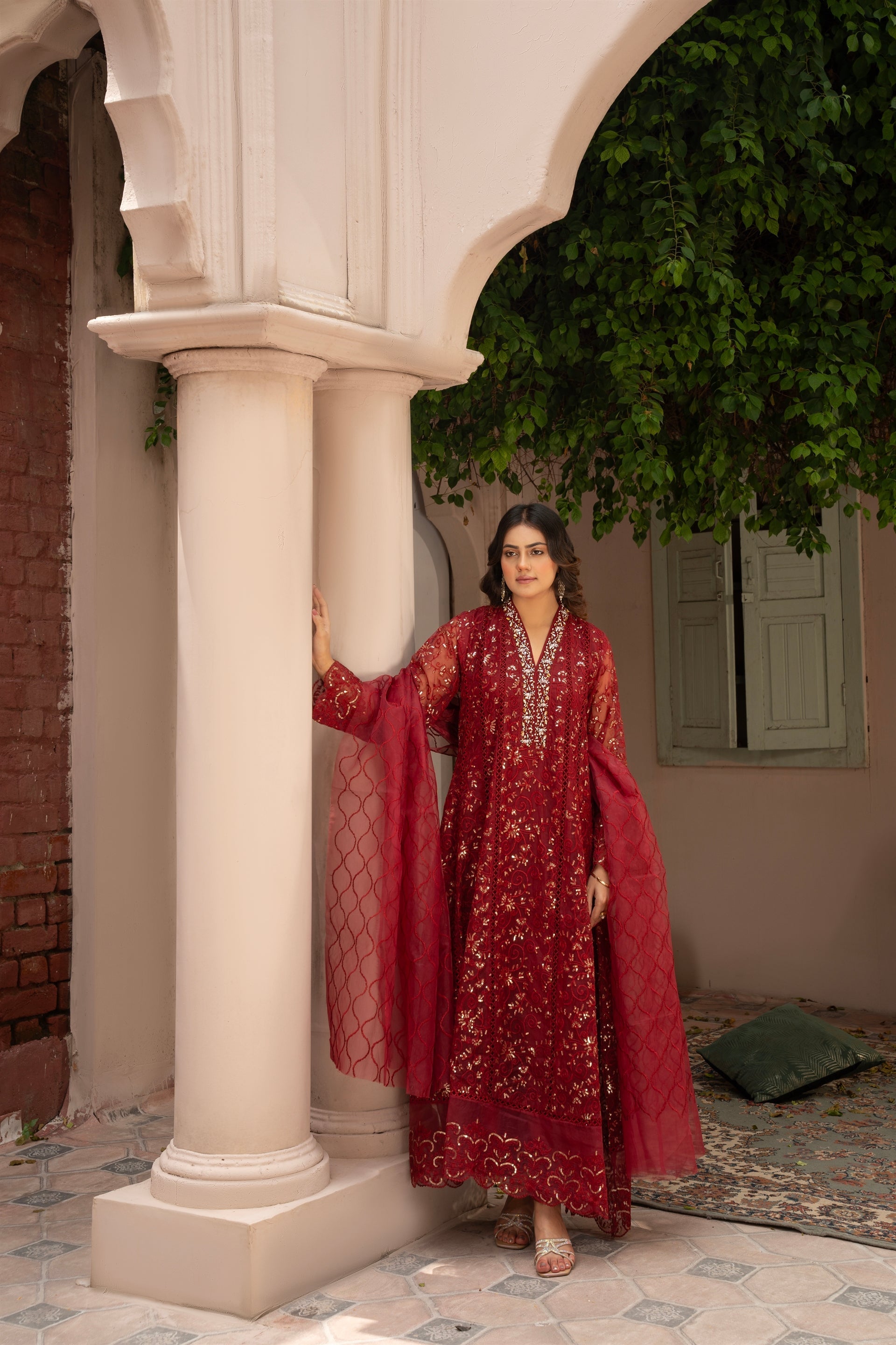 Rang Nirala By Manahils Stitched 3 Piece Formals Collection'2025-K-151-MAROON