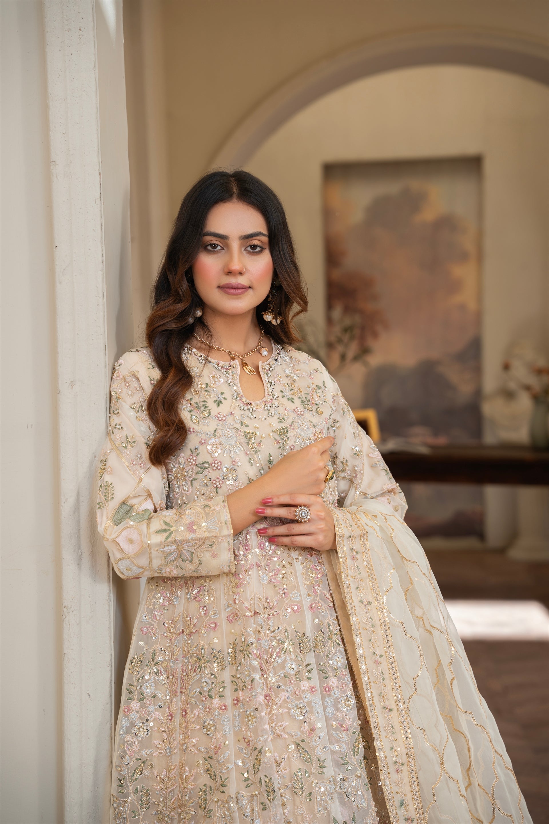 Couture by Manahils Stitched 3 Piece Luxury Formals Collection'2025-022-BEIGE