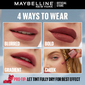 Super Stay Teddy Tint lasts for up to 12 hours. No transfer. In 10 buildable shades. Wear it sheer, blurred, bold or even on cheeks.