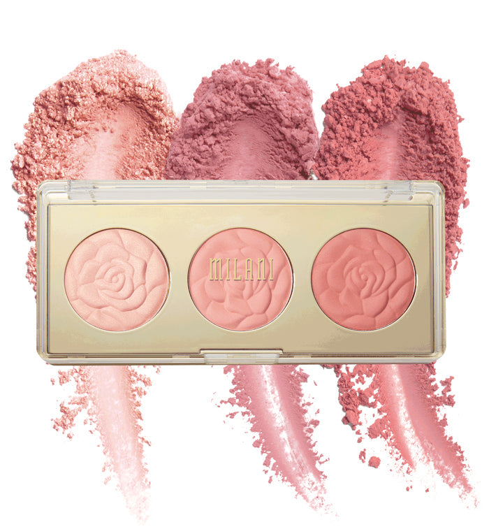 - That rose, though! Come through blooming with our Rose Blush Trio palette. This three-pan palette offers triple the petal-perfect beauty. This blush palette comes in two different collections, and each collection offers a trio of color-coordinated, highly pigmented blush shades that can be blended together or worn alone to amplify and define cheekbones. Each palette features matte to shimmer, finely-milled textures for a perfect flush of buildable color, letting you create a range of multidimensional looks. These perfect pinks flatter every skin tone -- no rose-colored glasses needed. Formula is vegan.