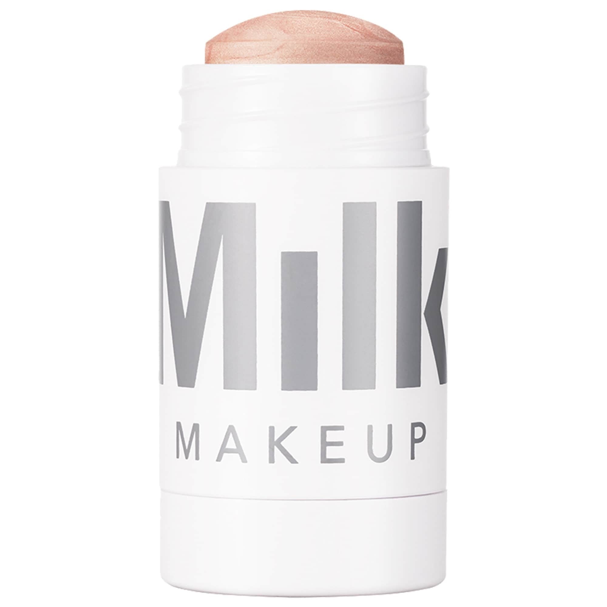 Milk Makeup Mini Highlighter is a multi-use, creamy pearlescent highlighter stick that glides on and blends seamlessly for a natural, radiant glow and long-lasting hydration. Formulated with a hydrating blend of coconut oil, mango butter, and avocado oil, this luminous cream formula gives you a natural, radiant glow with long-lasting hydration. The multi-use stick makes it easy to apply to cheekbones, collarbones, arms, or legs—anywhere you want a dewy, luminous finish.