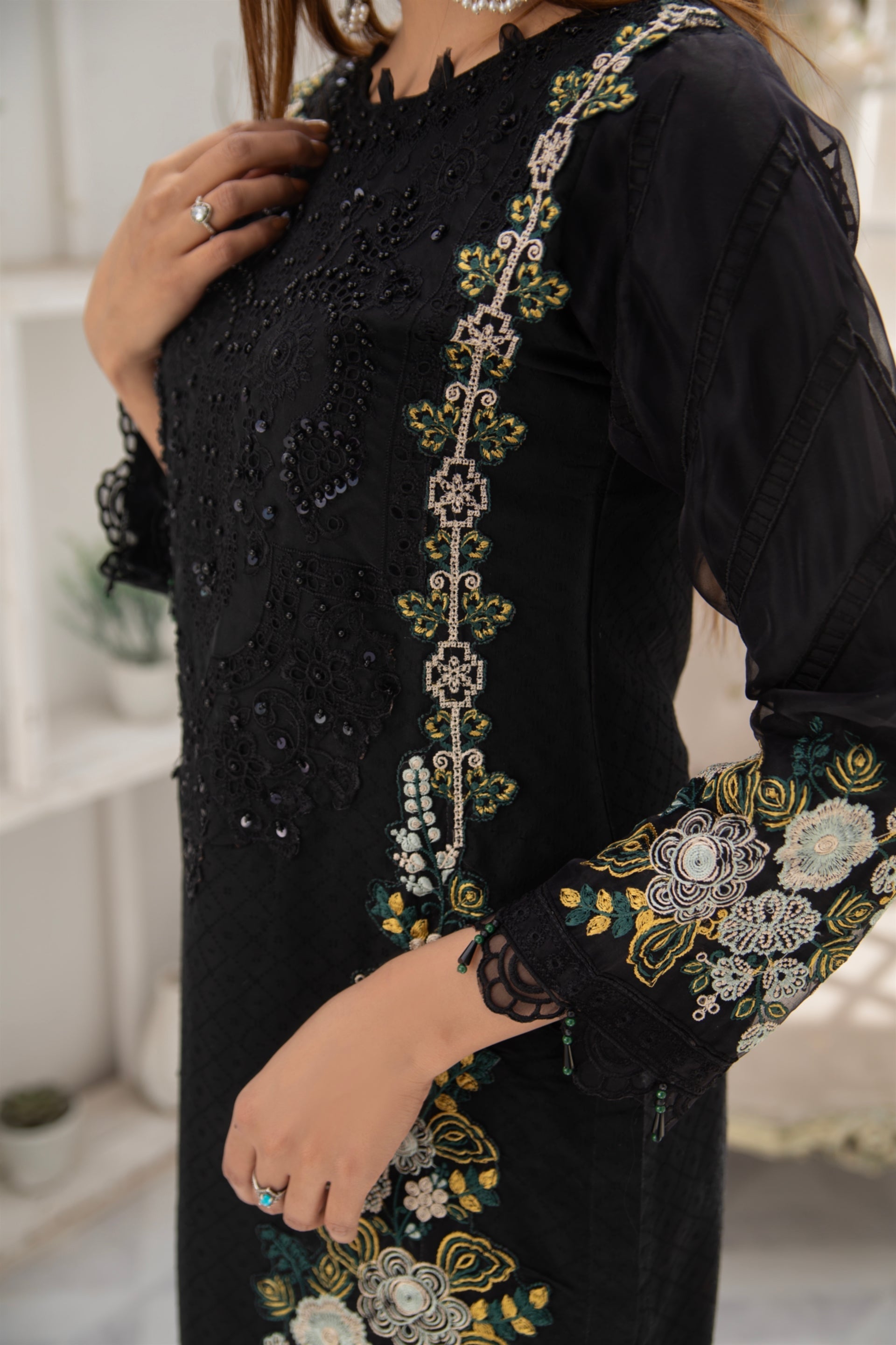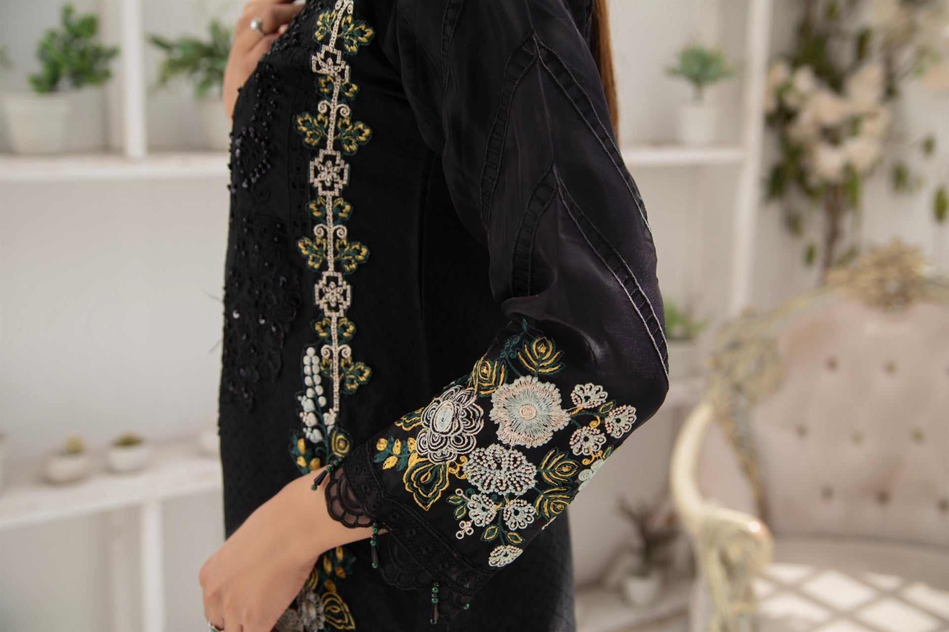 - Additional Description: SHIRT EMBROIDERD & HAND EMBELLISHED.