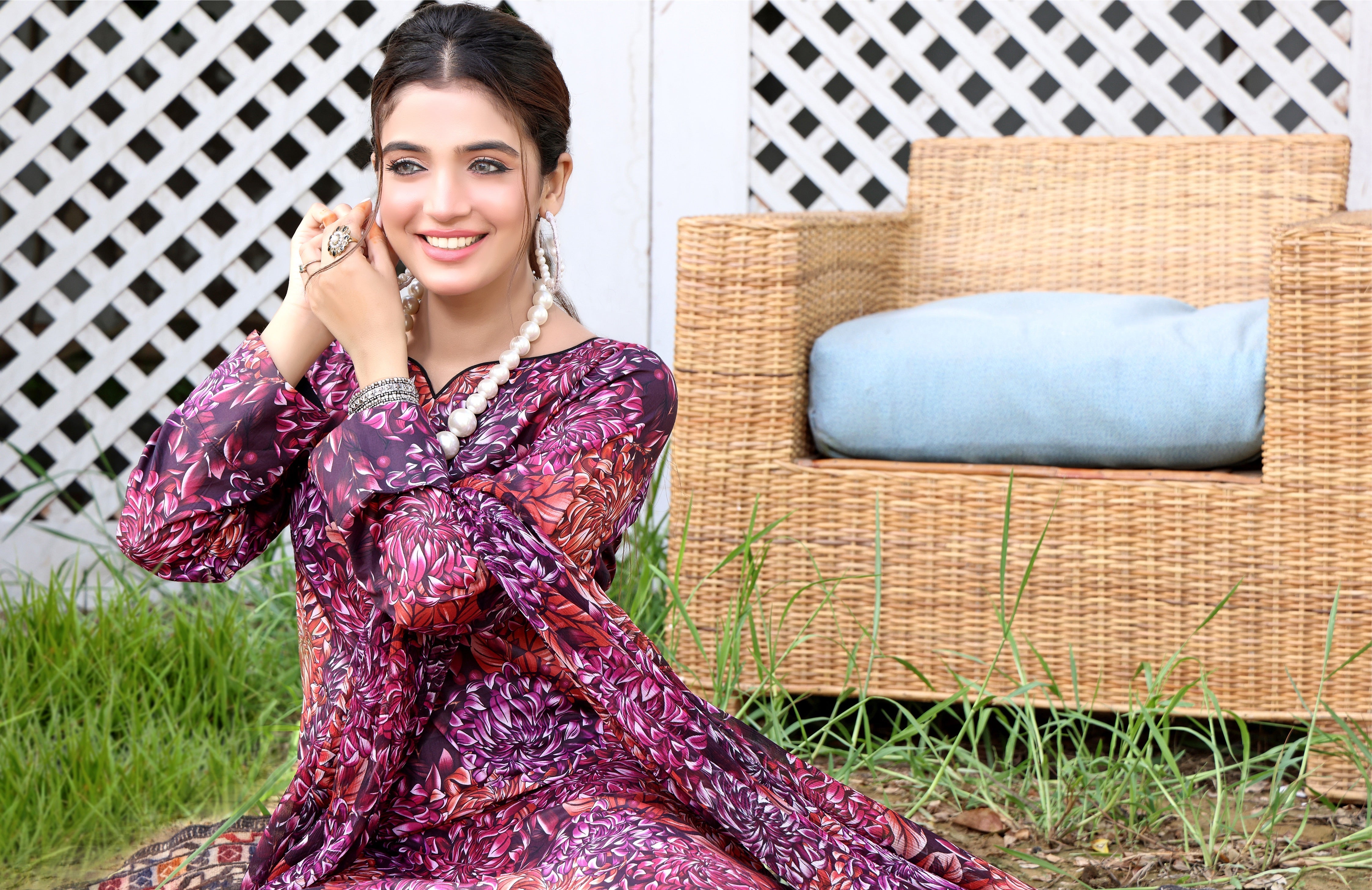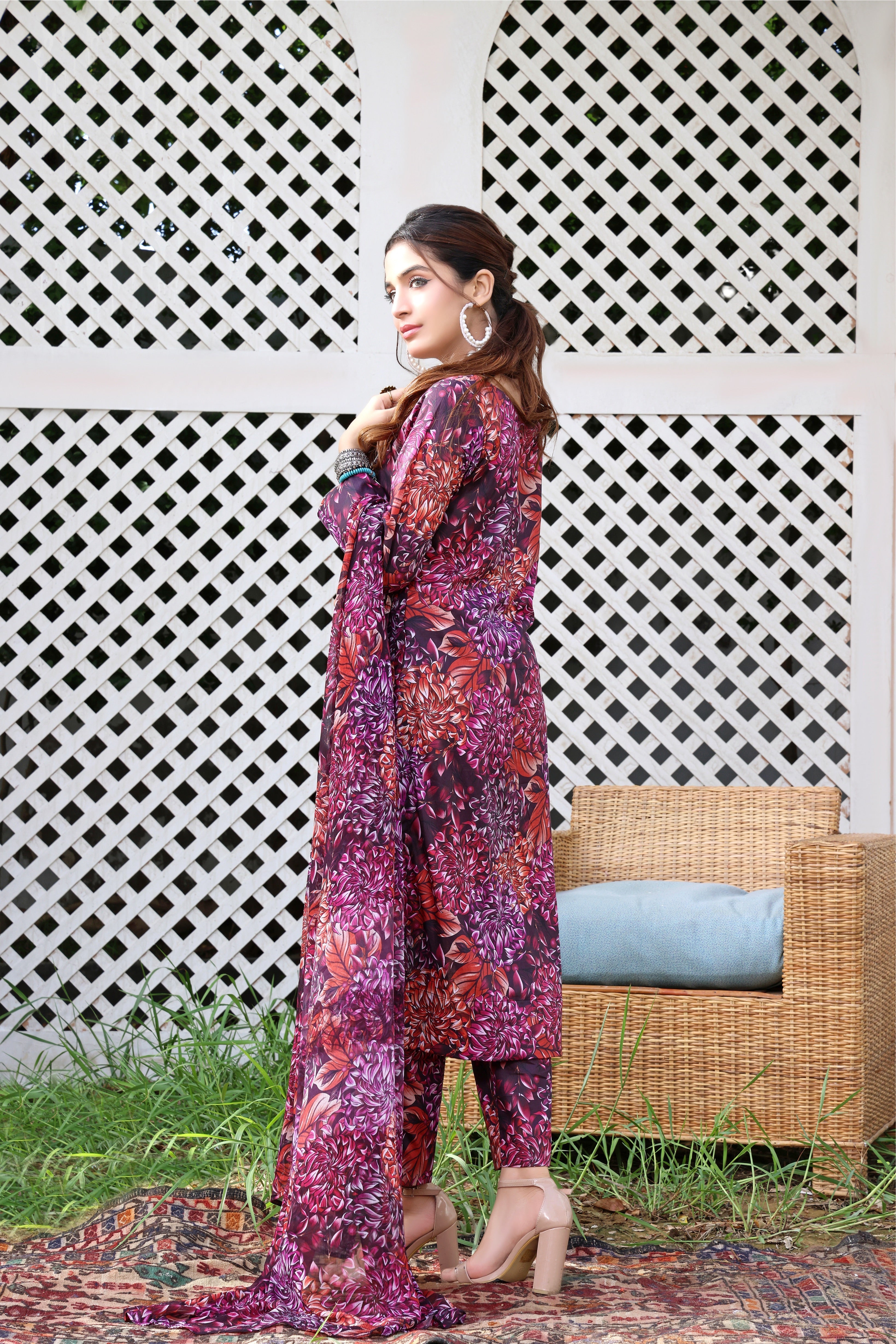 The article includes:Unstitched 3PCDigital Printed Shirt 3 yardsDigital Printed Chiffon Dupatta Digital Printed Trouser 2.5 yards