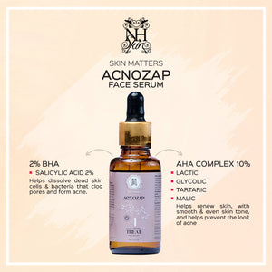 ACNOZAP Face Serum is the fourth step for the acne treatment which helps ‘treat’ and soothe the acne. This is a gentle peeling serum made with 10% AHA & 2% BHA which helps reveal brighter, clear skin from within.