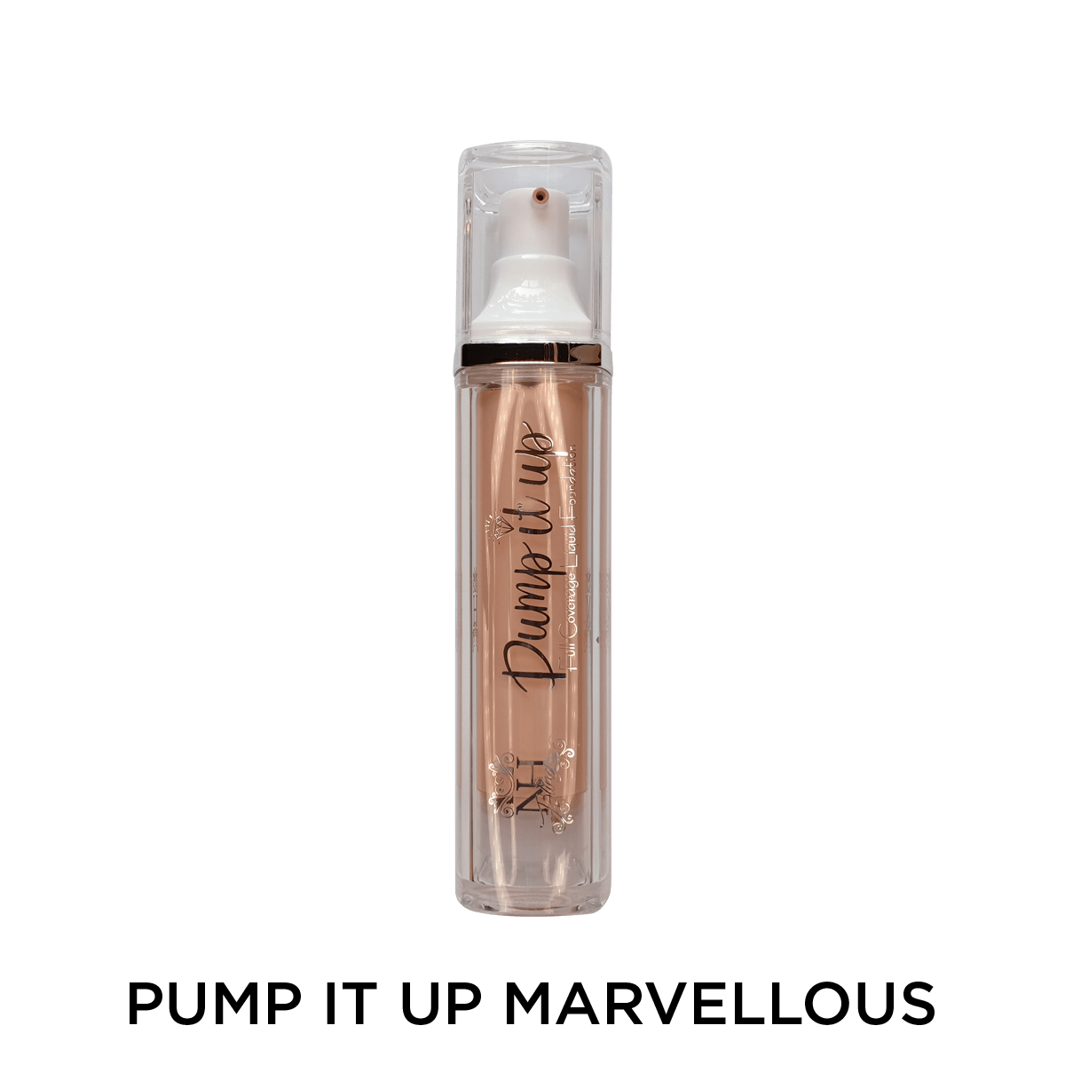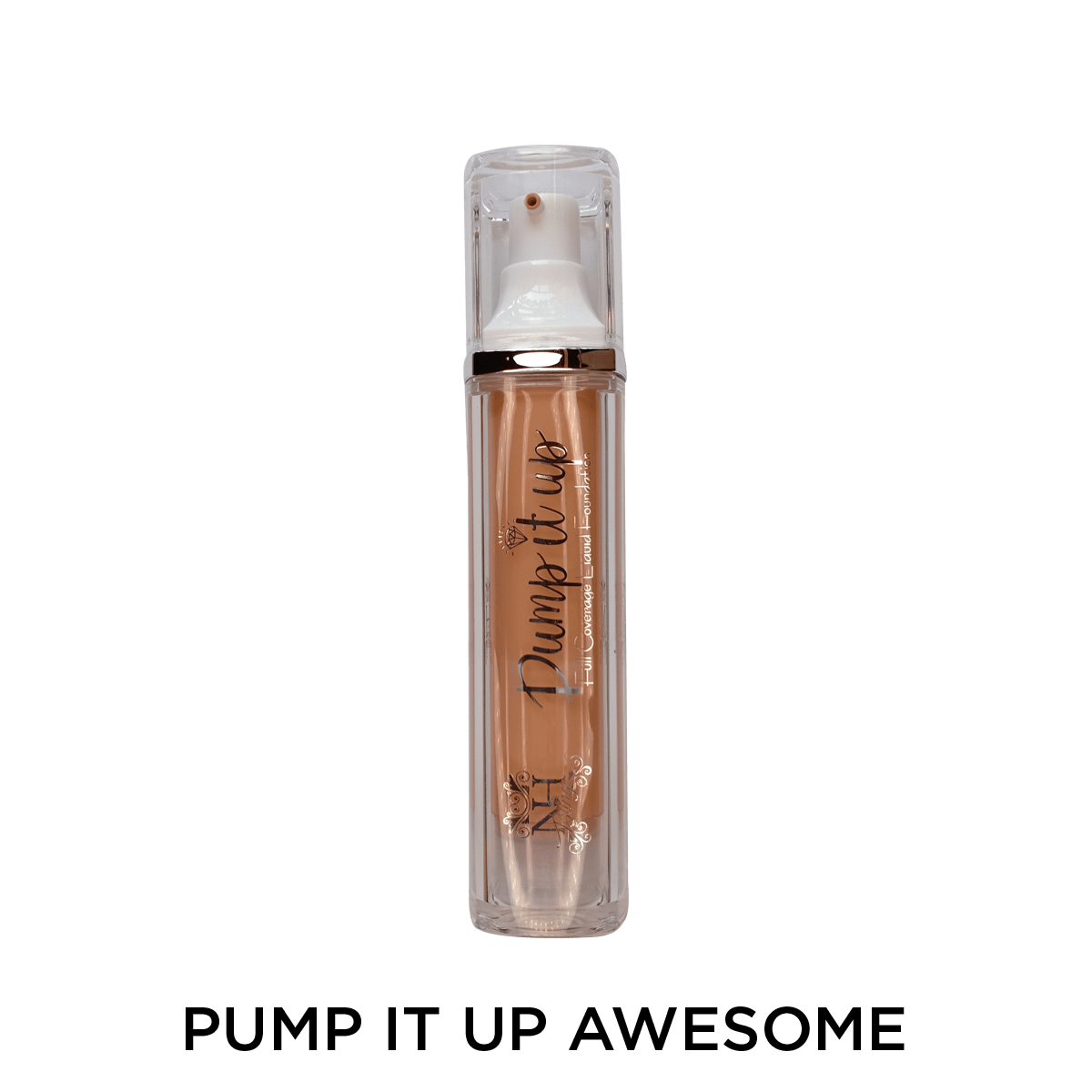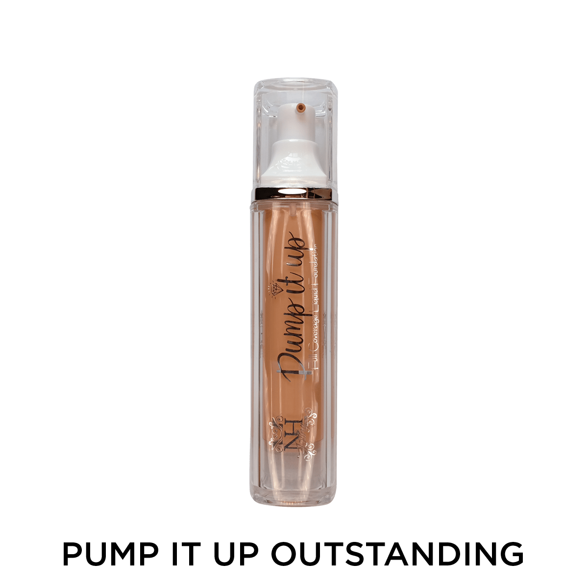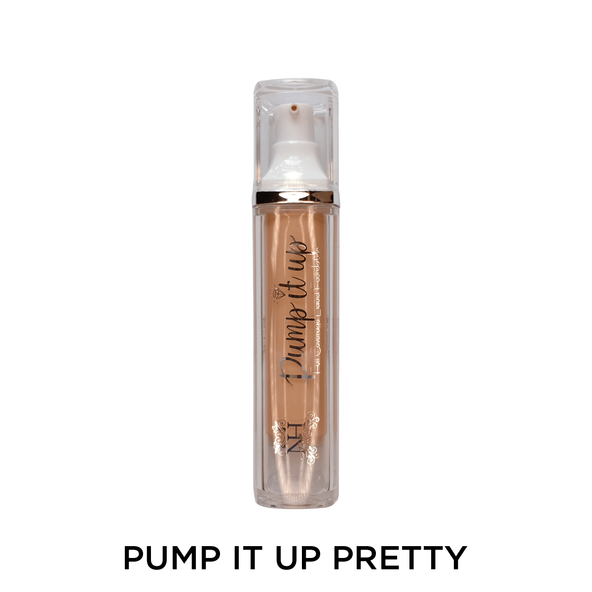 PUMP IT UP is a full coverage, long wear liquid foundation with a semi-matte finish for a beautiful flawless complexion that you always wanted! 1 pump: light coverage, 2 pumps: medium coverage, 3 pumps: full heavy coverage. Set with a loose or a compact powder and you’re good to go for the whole day!! With a wide range of 10 colors, PUMP IT UP is perfect for everyday wear for a light daytime look to a super glam evening look! Pump up your makeup game with the NH BLING “PUMP IT UP” FOUNDATION!!