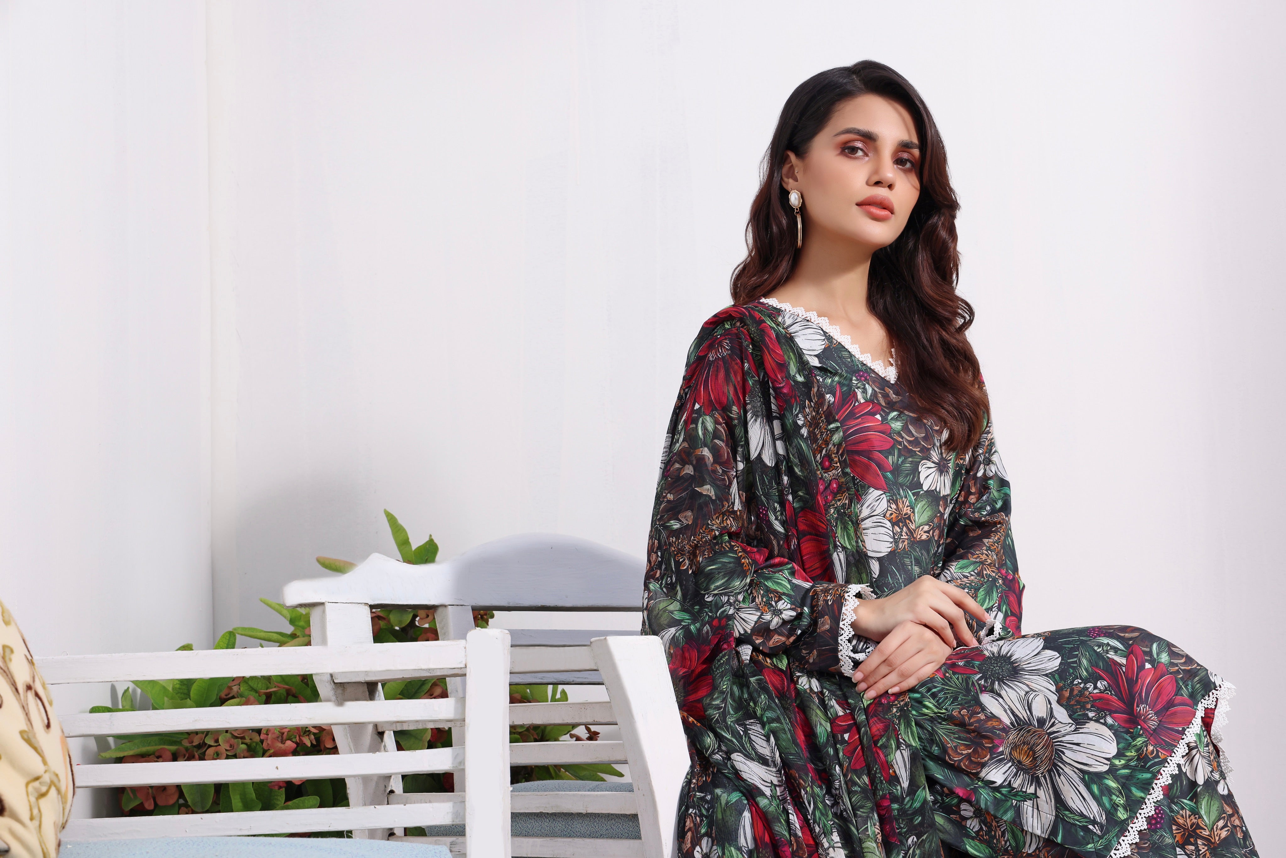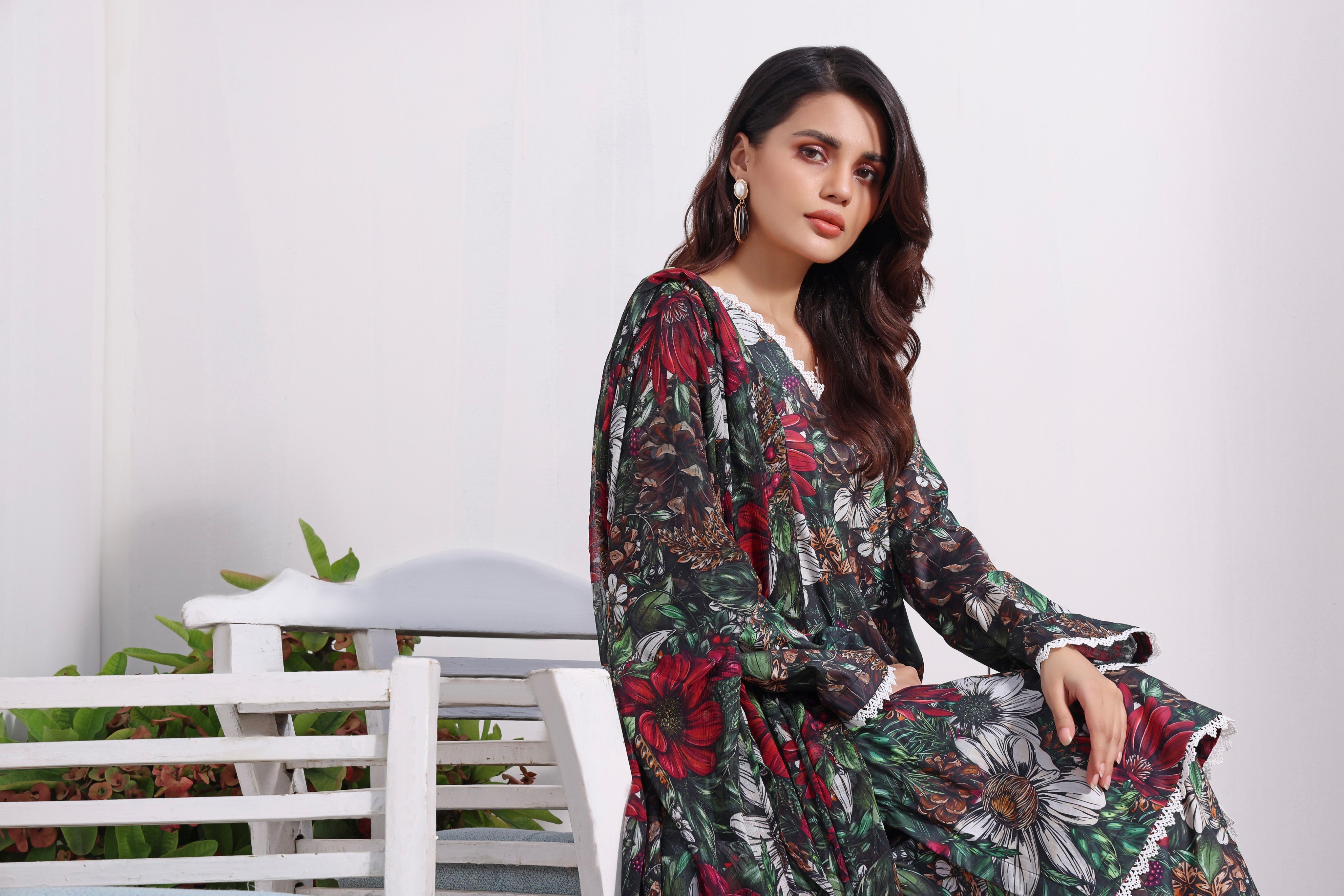 The article includes:Unstitched 3PCDigital Printed Shirt 3 yardsDigital Printed Chiffon Dupatta Digital Printed Trouser 2.5 yards