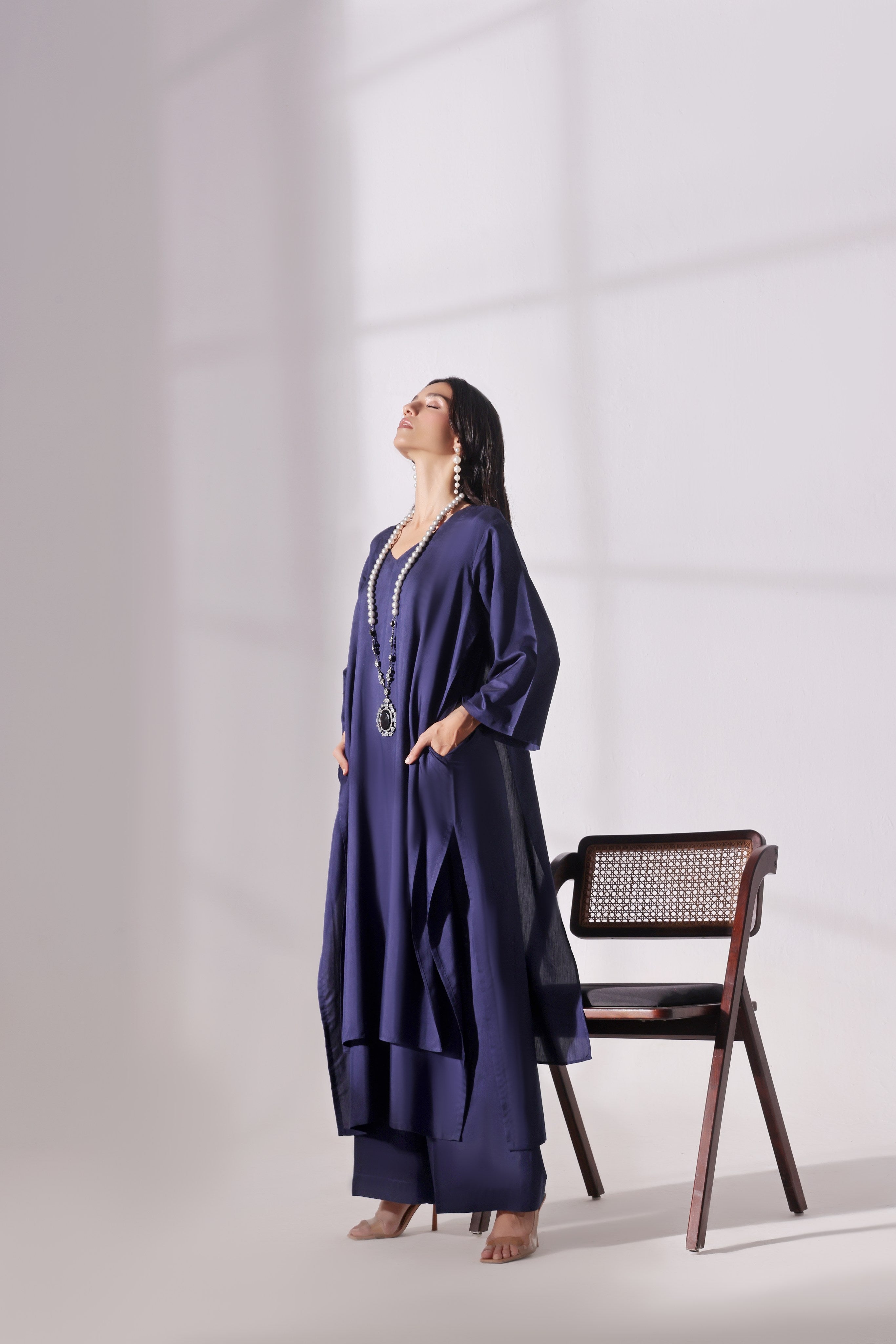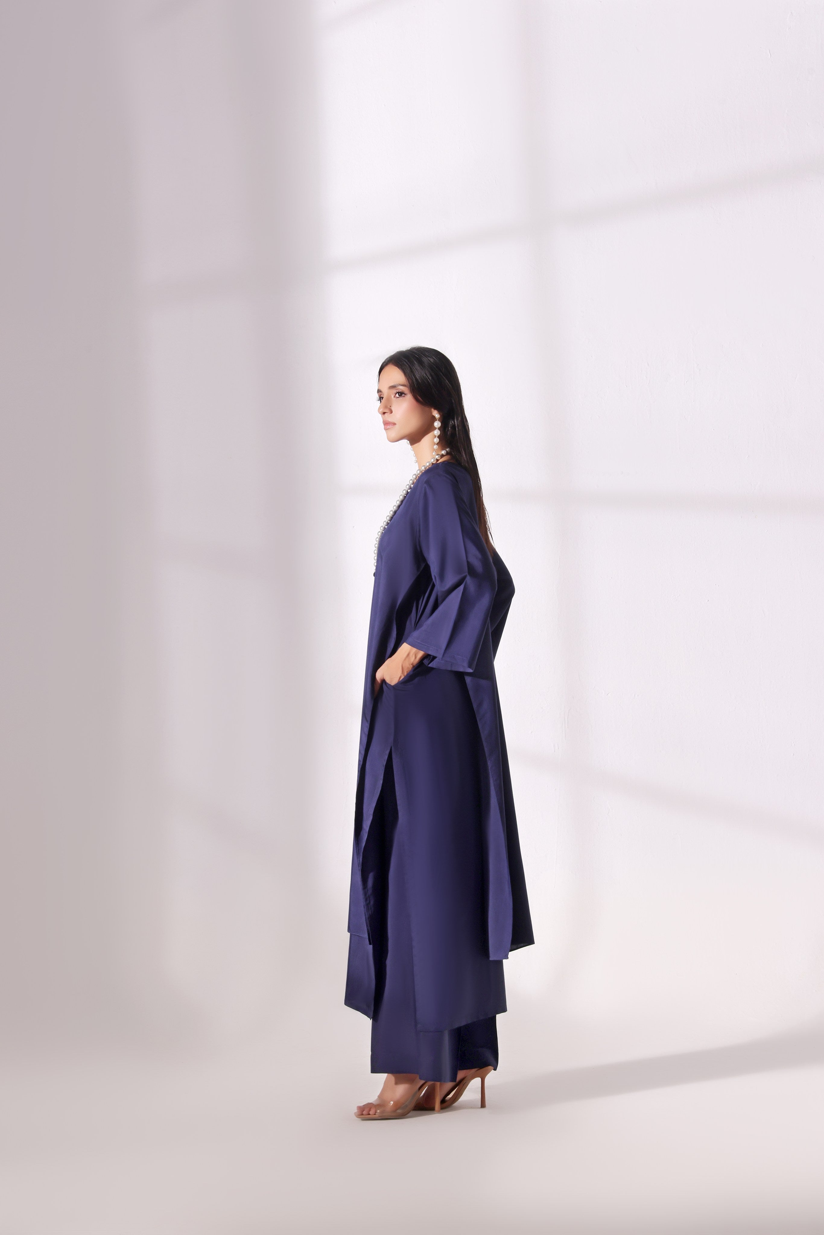 Step into timeless sophistication with the NOVA Dress, a versatile two-piece set designed to bring effortless grace and modern elegance to your wardrobe. Crafted in a rich navy blue tone, it blends fluid tailoring with a minimalist silhouette for a refined statement.