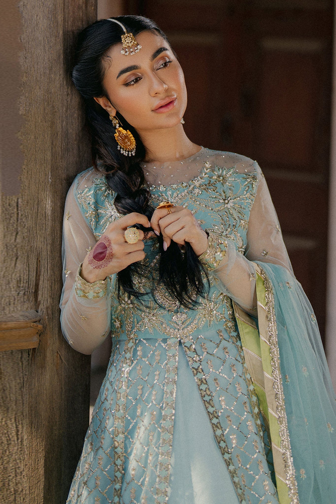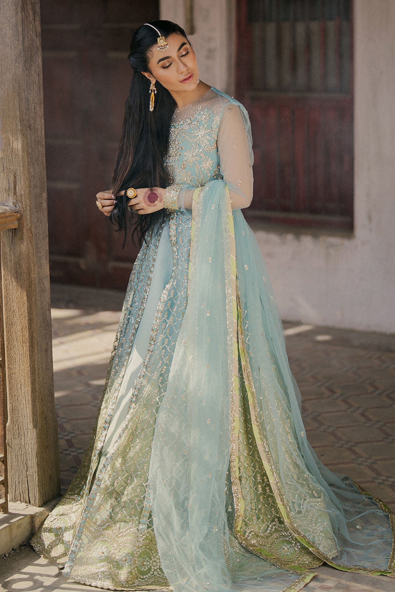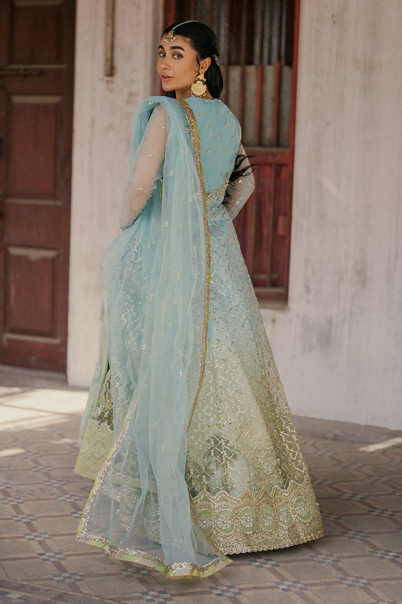 -Embroidered and sequinned for front and back daman