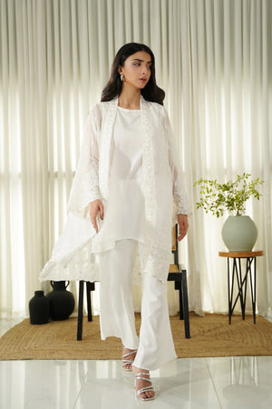 Introducing our elegant white embroidered Coat. This mid-length Coat features intricate embroidery, and is made from high-quality fabric for comfort and style.