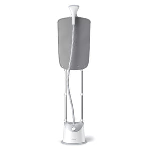 The Philips GC487 is a compact yet powerful garment steamer designed for easy de-wrinkling every day. It features a 35g/min continuous steam output and three variable steam levels for optimal results on different fabrics.