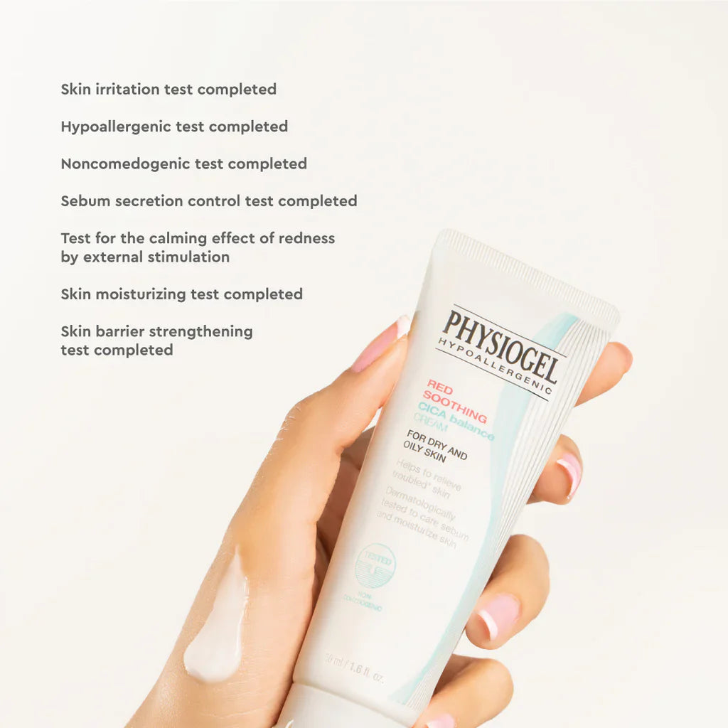 Red Soothing CICA Balance Cream 50ml- This moisturizer helps to relieve troubled skin while strengthening the skin barrier.- Helps soothe stressed skin and reduce skin redness.- Completed skin irritation tests. How to Use Apply an appropriate amount to your face and pat lightly for better absorption. Ingredients Water, Hydrogenated...