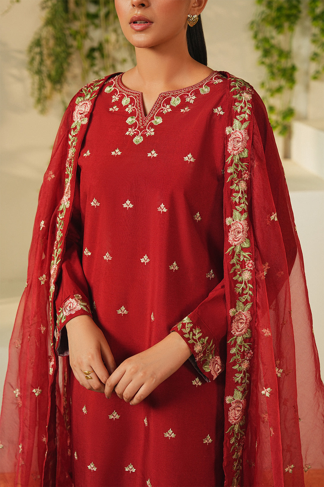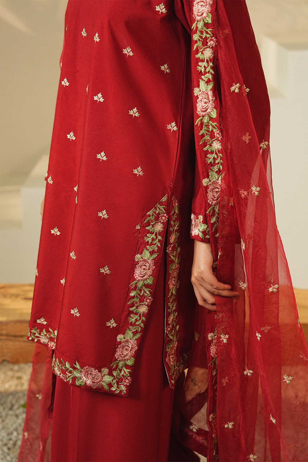 Elevate your style with our Rose outfit. Crafted from luxurious viscose fabric, it exudes elegance with its stunning farshi shalwar and intricate organza dupatta. Make a statement at any occasion with this beautifully embroidered ready-to-wear ensemble.