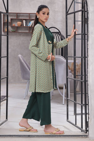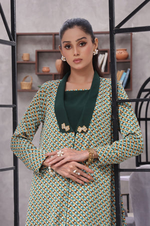 Top: Dark Green Printed Georgette Cape With Malai Crepe Inner