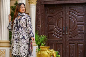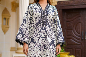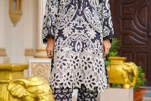 This exquisite festive/party wear kurta set exudes elegance in deep purple. The straight cut kurta features intricate embroidery, while the cotton shalwar adds a traditional touch. Complete with a matching dupatta in lawn fabric, this 3-piece ensemble is perfect for all seasons. Lining attached for convenience. Brand: Gulposh By Kkt.