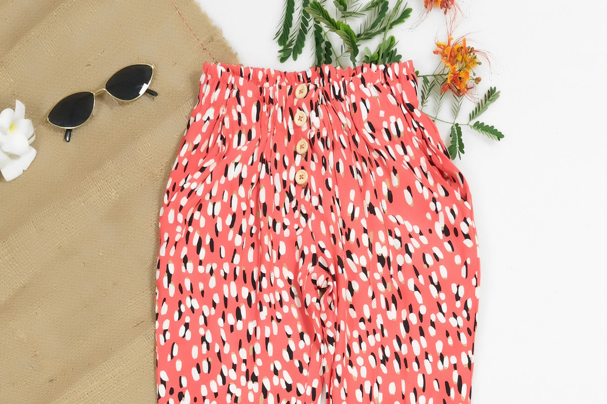 Sprinkles Stitched 1 Piece Summer Bottoms Women Collection'2025-Red Floral Straight Pant Front Button
