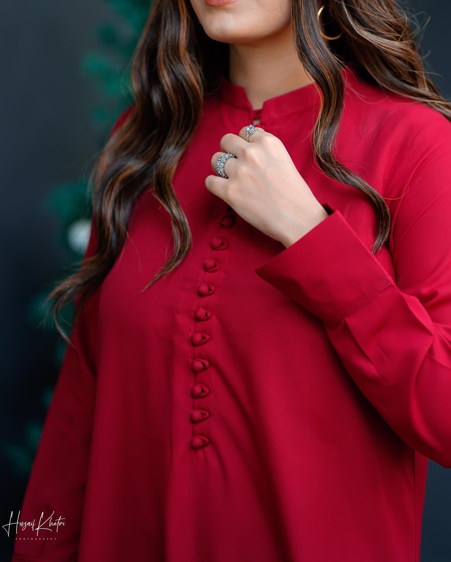 Zauk Stitched 2 Piece Collection-Red Two Piece Dress