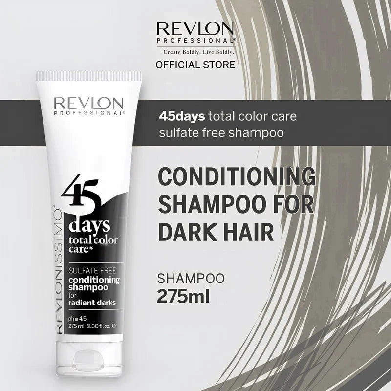 Revlonissimo™ 45 Days Total Color Care cares for the hair while protecting the vibrancy and depth of cold or warm blonde, bright coppers, brunettes/browns and red shades. It replenishes pigments in the hair fiber to compensate for the gradual color loss caused by washing.