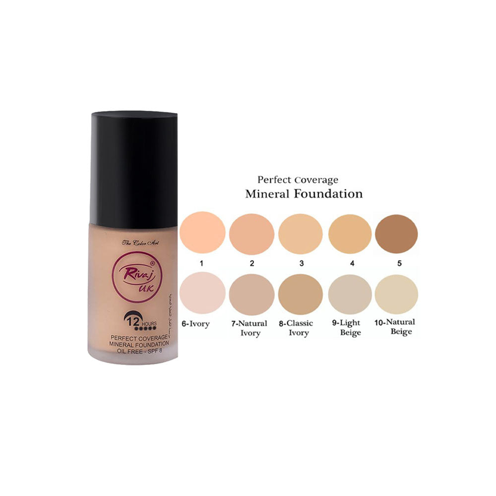 Rivaj UK Perfect Coverage Mineral Foundation - This oil-free foundation gives you the benefits of makeup and skincare in one step. The lightweight formula smooths onto skin with a refreshing sensation and builds from sheer to medium coverage for a dewy, healthy-looking glow.