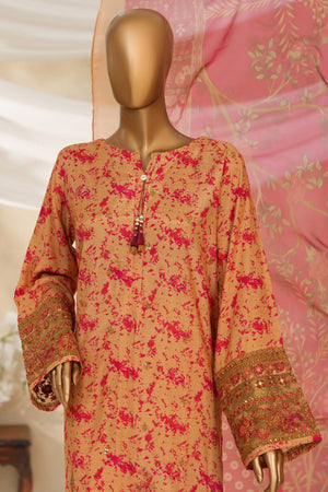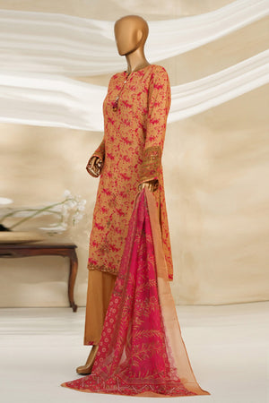 Majestic By HZ Stitched 3 Piece Emb Silk Collection'2025-RRE-110-Peach