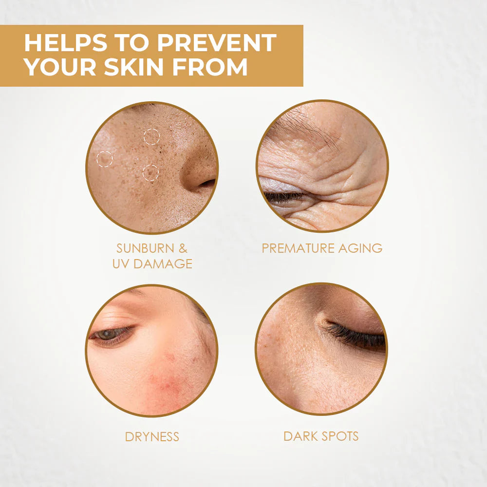Our zero white cast Sunscreen Serum shields against UVA & UVB rays, fights free radicals and helps brighten and nourish your skin, giving you a radiant, healthy glow. Its fast-absorbing, non-greasy texture makes it perfect for daily use. The antioxidant-rich formula helps repair sun damage while keeping your skin hydrated. Get all-day sun protection with a smooth, breathable finish.