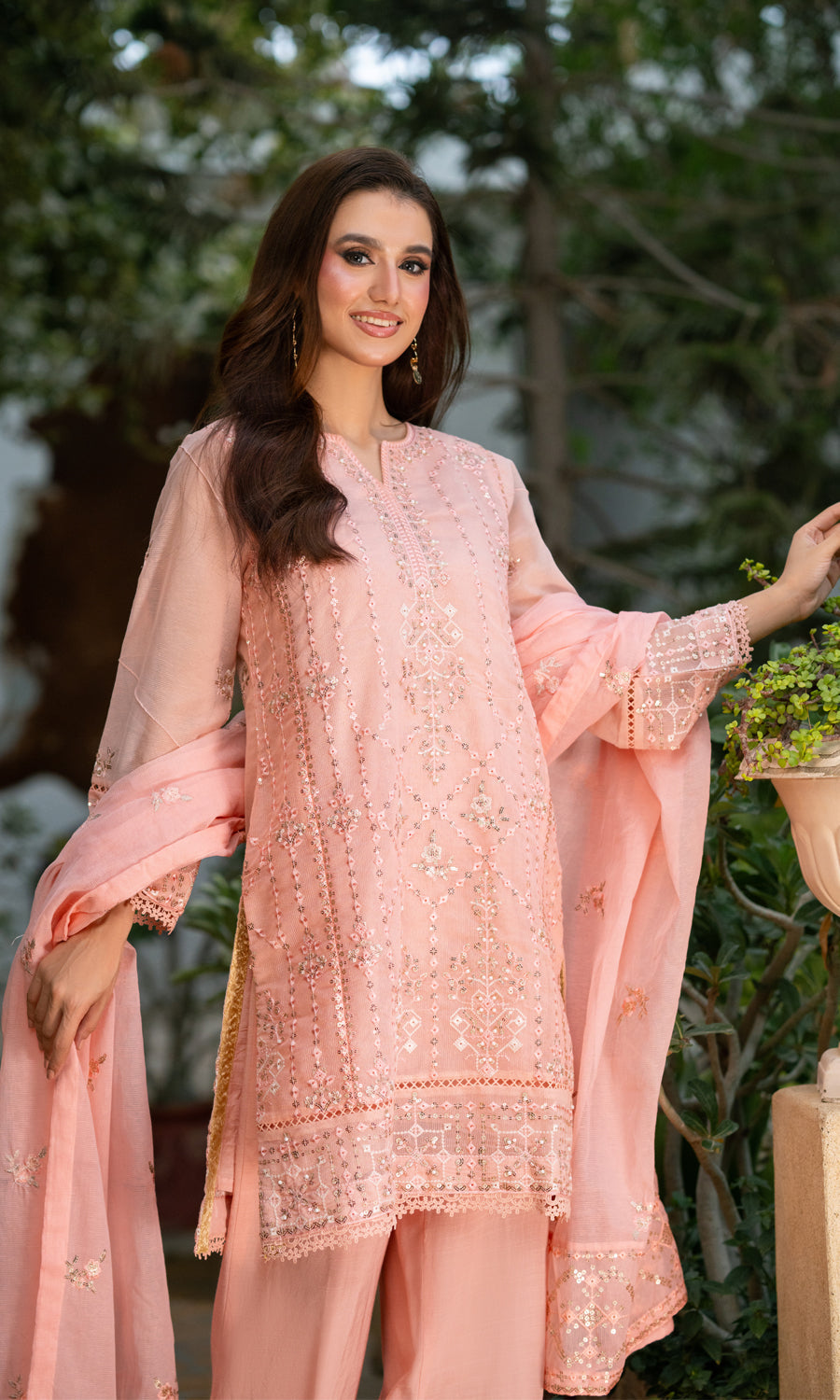 Shamooz Stitched 3 Piece Formals Collection'2025-Tea Pink SE-020