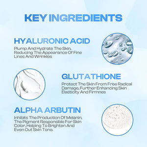 Protects skin from damage caused by free radicals: ferulic acid ,Hyaluronic acid and glutathione are all antioxidants that help to protect the skin from damage caused by free radicals.