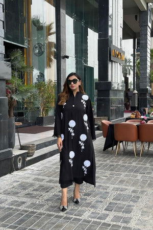 Manahils By ALLECHANT Introducing 'black Ari embroidery shirt a shirt that blends comfort with style seamlessly. Crafted from premium crepe fabric, its unique pattren design with white embroidery a touch of bohemian flair to your wardrobe. Versatile and effortlessly chic, 'Embroidery' embodies the essence of semi formal sophistication, making it a must-have for those who appreciate fashion with a free-spirited edge.'