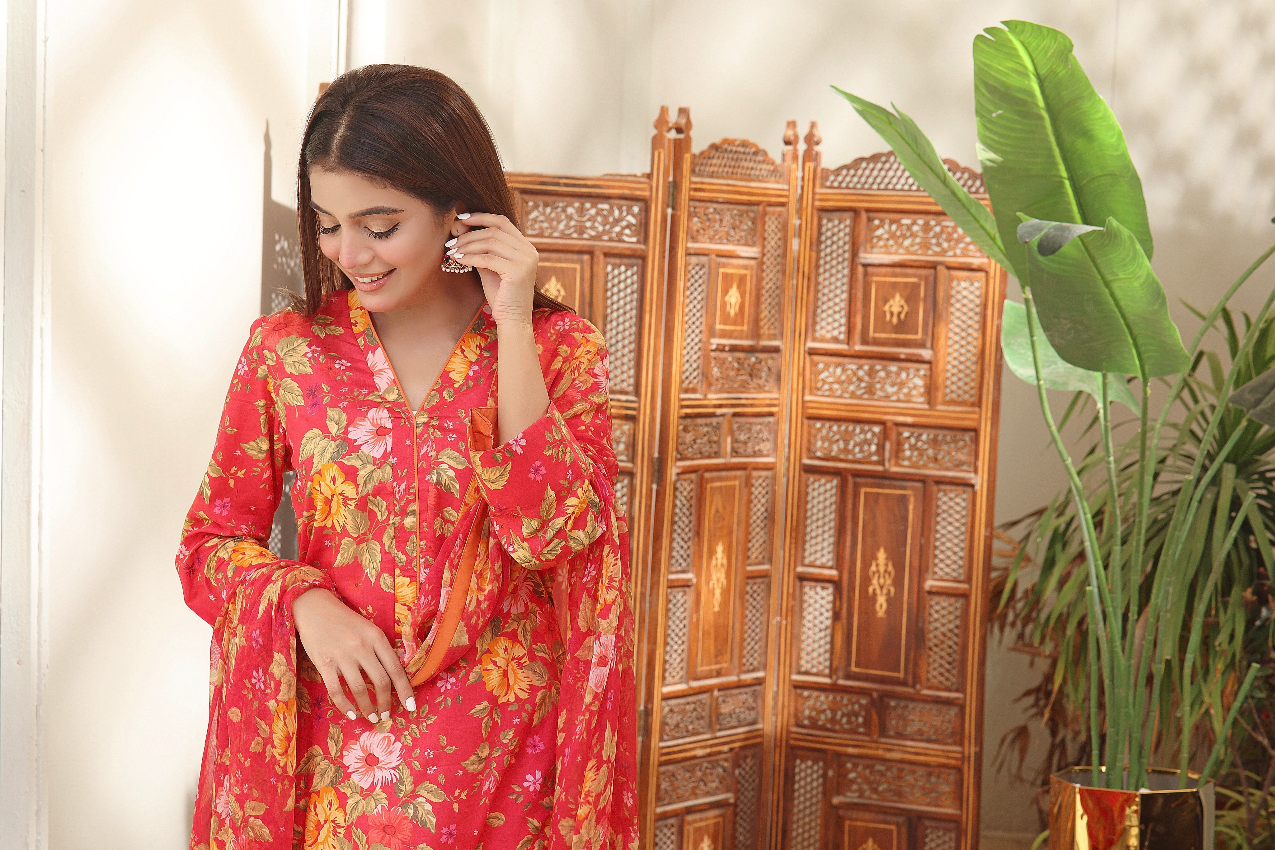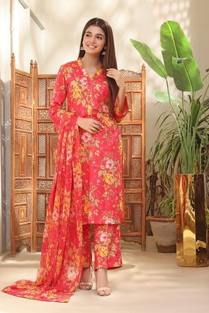 Experience ExquisitelyThis suit is for a new goes this summer seasonThe article includes:Unstitched 3PCDigital Printed Shirt 3 yardsDigital Printed Chiffon Dupatta Digital Printed Trouser 2.5 yards