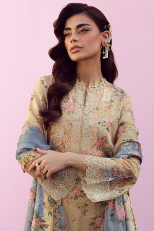 Mirha By Sahar Unstitched 3 Piece Emb Lawn Suit-SS1-26-37-Rose Creme