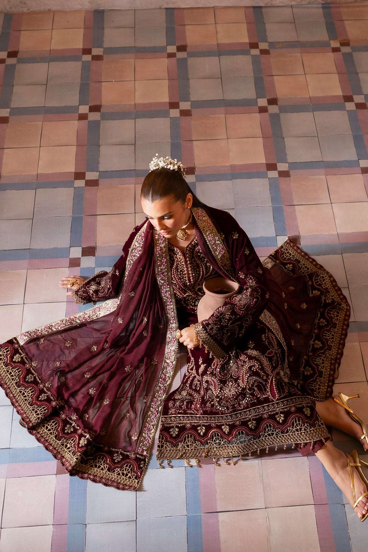 Velvet Embroidered Dupatta Border.