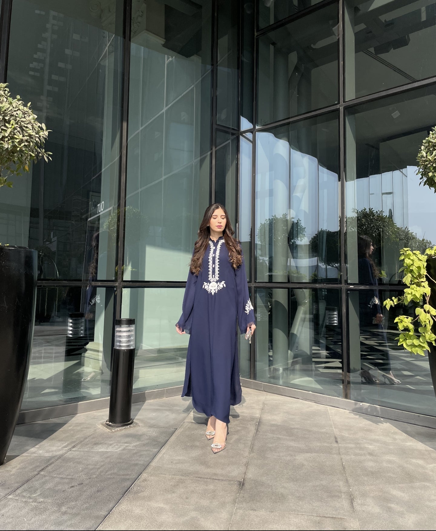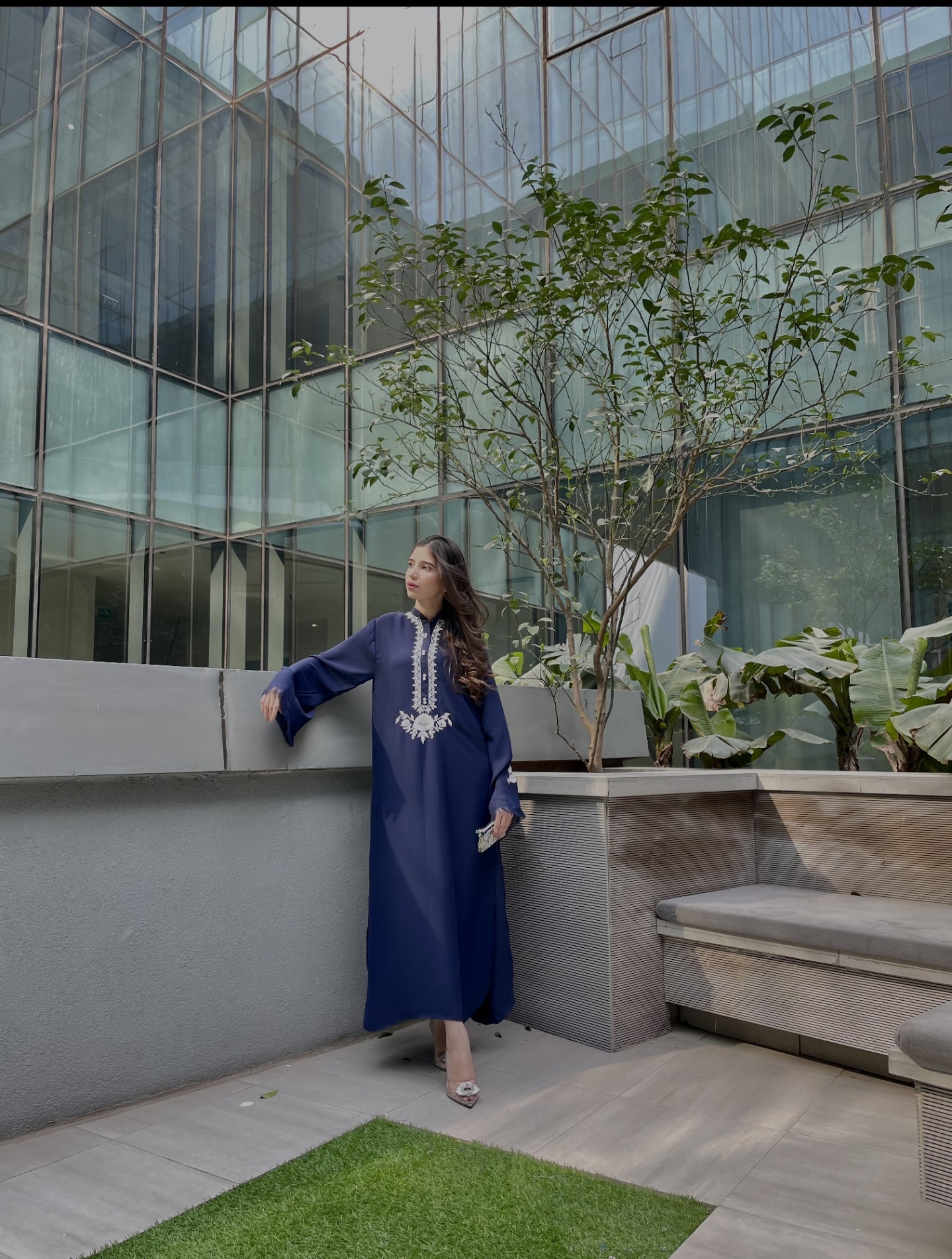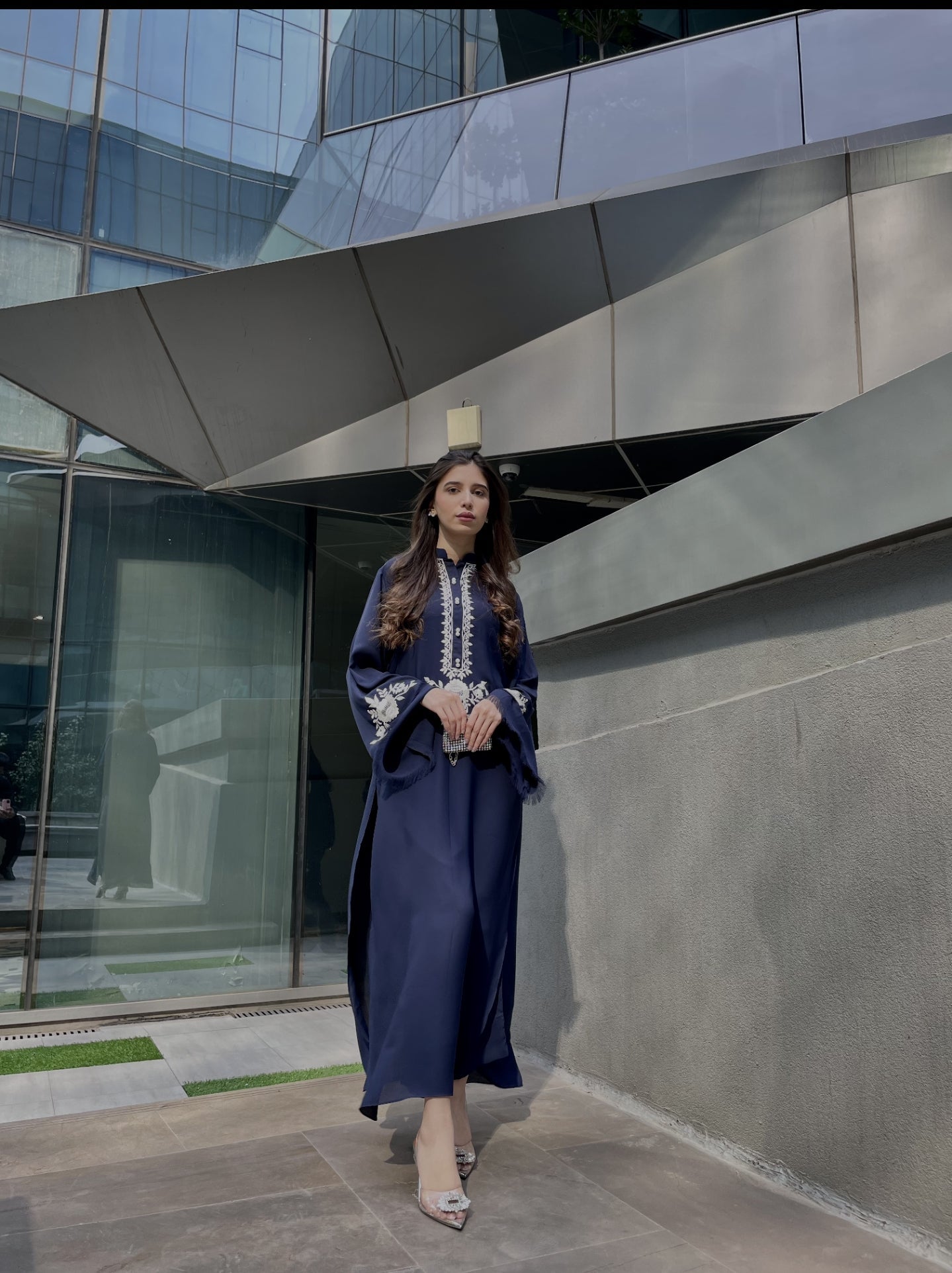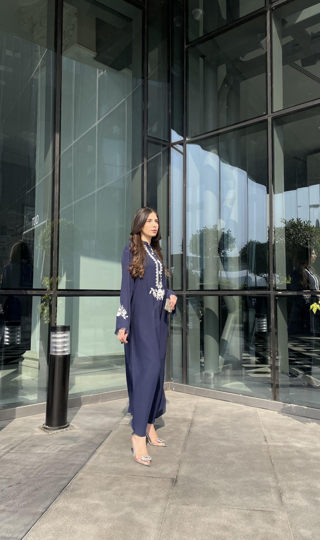 Beautiful fusion of colour, embroidery on long shirt with plain pants