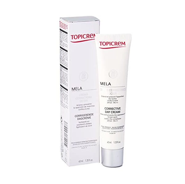 Topicrem MELA Corrective Day Cream SPF20 is a moisturizer with sun protection that corrects hyperpigmentation. First and foremost, it reduces the noticeability of existing dark spots while also preventing the emergence of new ones. Additionally, it makes the complexion look overall more even and boosts radiance over time.