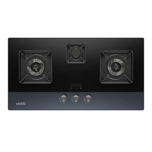 The Vatti 3 Burner Gas Hob C830G combines power and style, featuring high-efficiency brass burners and a sleek tempered glass top, making it a perfect addition to any modern kitchen.