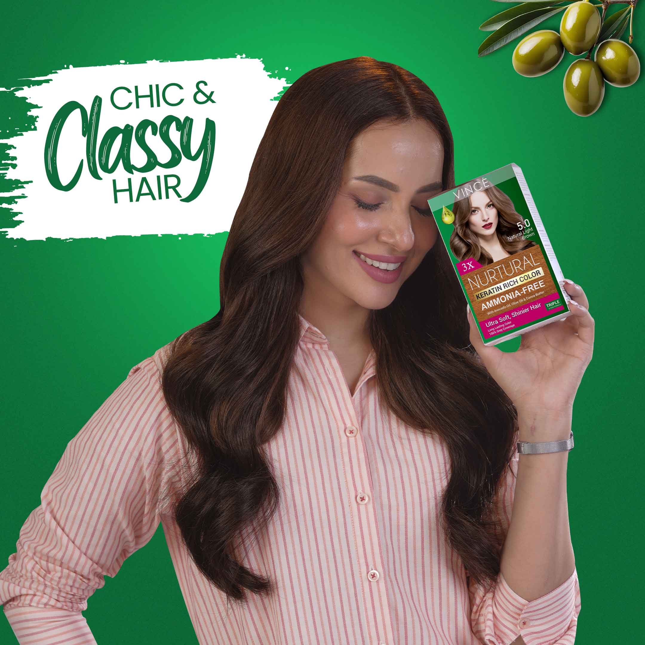Vince Nurtural is an innovative, cutting-edge formulation; enriched with the nourishing blend of Keratin, Olive Oil, Cocoa Butter, and Avocado Oil, which intensely helps to nutrify the hair fiber while penetrating deep into every hair strand so that the hair looks shiny, healthy, & silky.