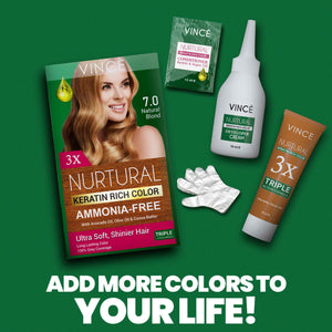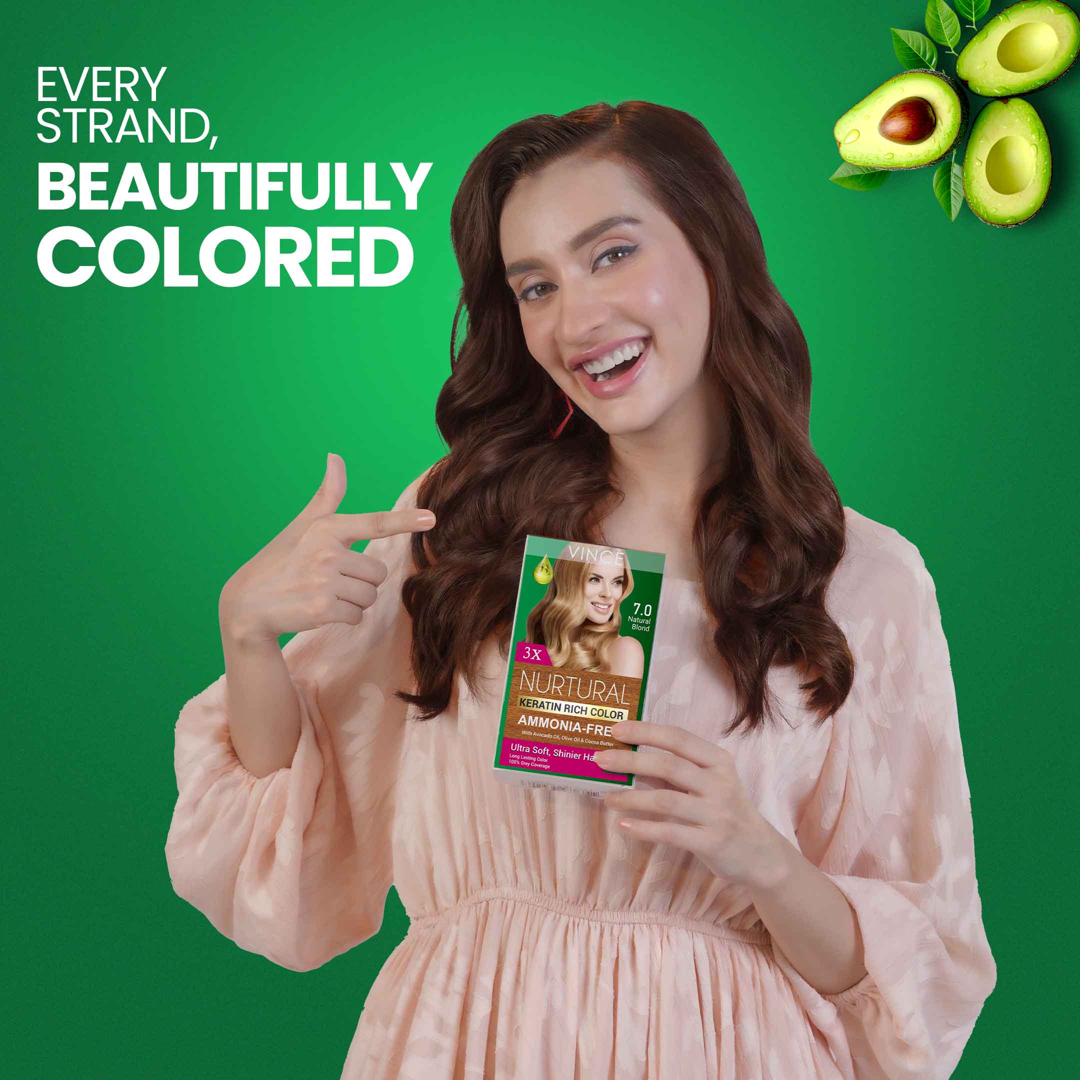 Vince Nurtural is an innovative, cutting-edge formulation; enriched with the nourishing blend of Keratin, Olive Oil, Cocoa Butter, and Avocado Oil, which intensely helps to nutrify the hair fiber while penetrating deep into every hair strand so that the hair looks shiny, healthy, & silky.