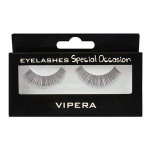 Vipera Special Occasion false eyelashes are extremely versatile and easy to use, perfect for creating a special look. Made of quality material, they look elegant, refined and natural. It represents the best choice for special occasions. Lashes with the "open" eye effect give the shape of a "cat's eye" with a diagonal arrangement of the hairs. The effect can be romantic or daring, depending on the makeup chosen. The product consists of two elastic strips with threads, which must be glued carefully along the line of own eyelashes. They are fine, very light, comfortable and do not cause any discomfort. Applied correctly, they do not cause allergic reactions.