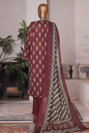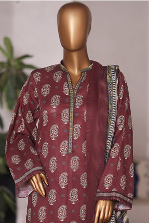 Bin Saeed Stitched 3 Piece Printed Cotton Vol-03 Collection'2025-WC-2414-Brown