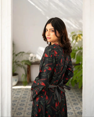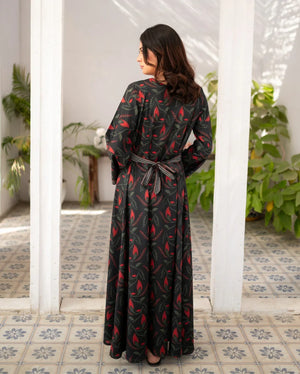 Zauk Charcoal Black Printed Long Dress