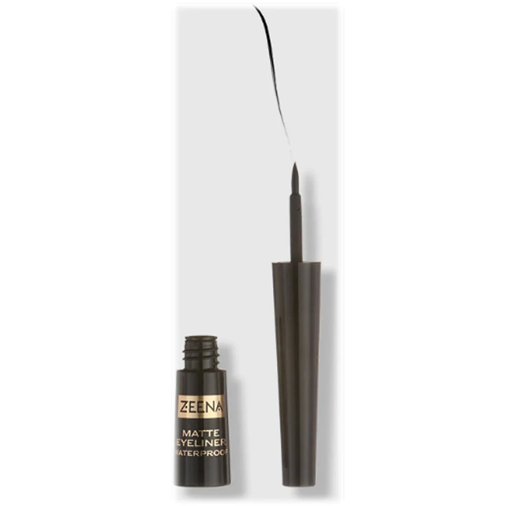"The intense black matte liquid liner has a fast drying, smudge free and waterproof texture. The ZEENA Matte Eyeliner Waterproof long lasting formula and defined felt tip applicator creates precise lines for an all day look!